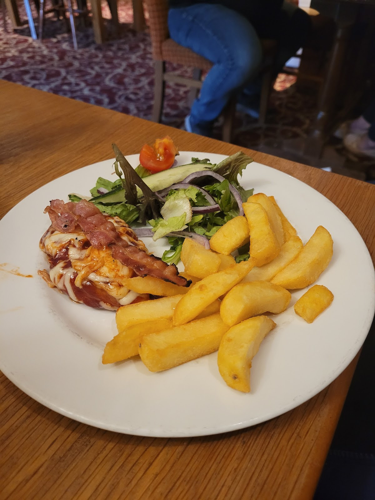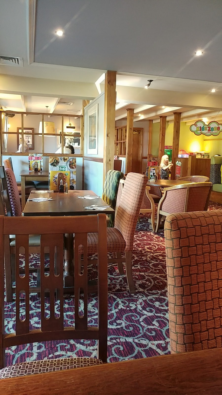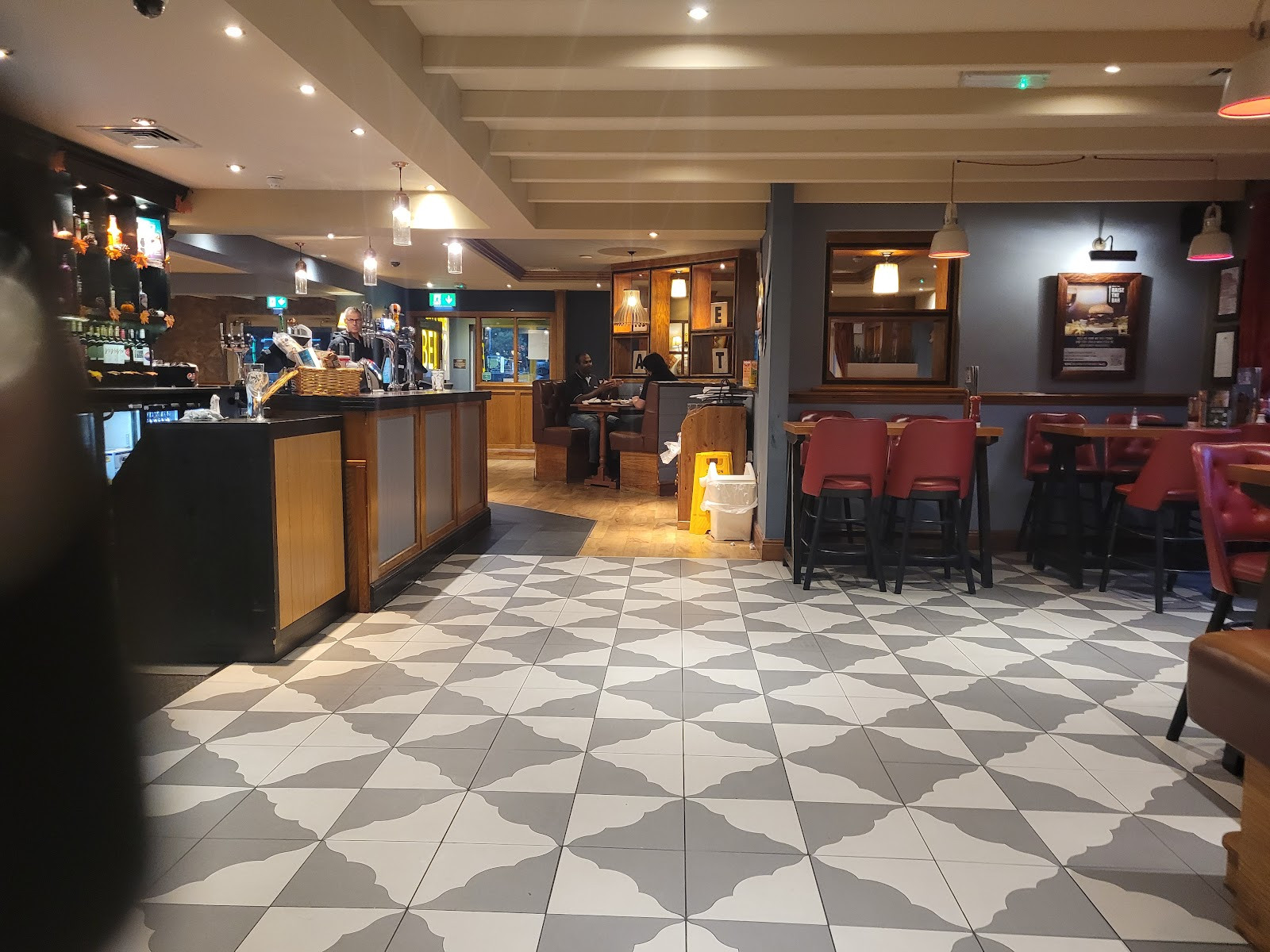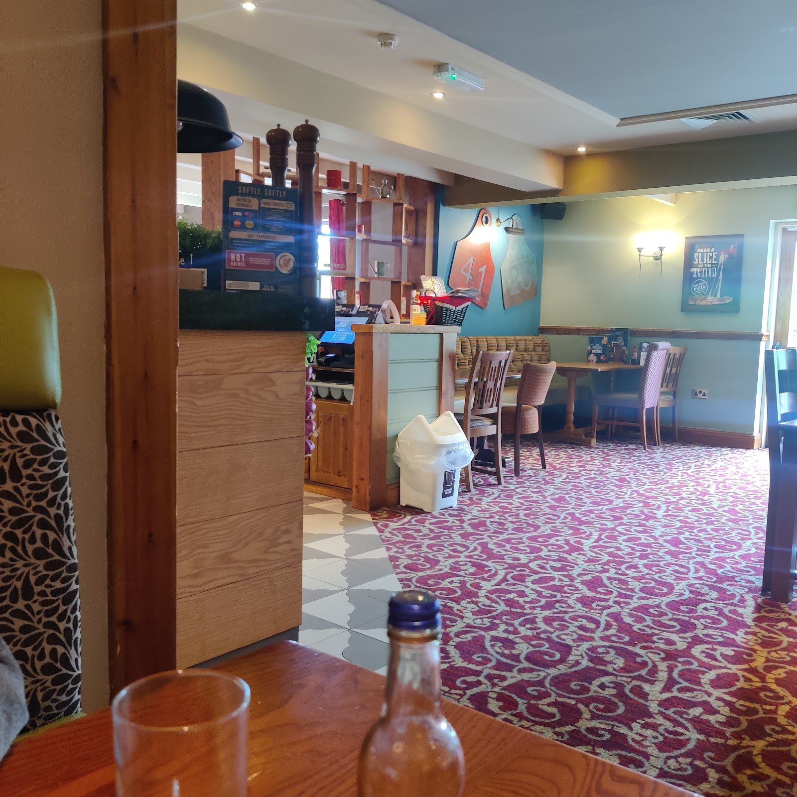 I've not been in for a long time and it looks the same as previously. The drinks still seem a little overpriced when you are paying £8 for two soft drinks, but could be worse I guess. The food was just average pub food, gammon was chewy but then it was somewhat overcooked. Didn't complain as they were run off their feet. However when I went to pick my handbag up off the floor I was given the ick to see the snail / slug trails all over the carpet. Surely they would be gone when the place is cleaned but there were a LOT. Hard to capture on a photo but took a couple to try and capture it.