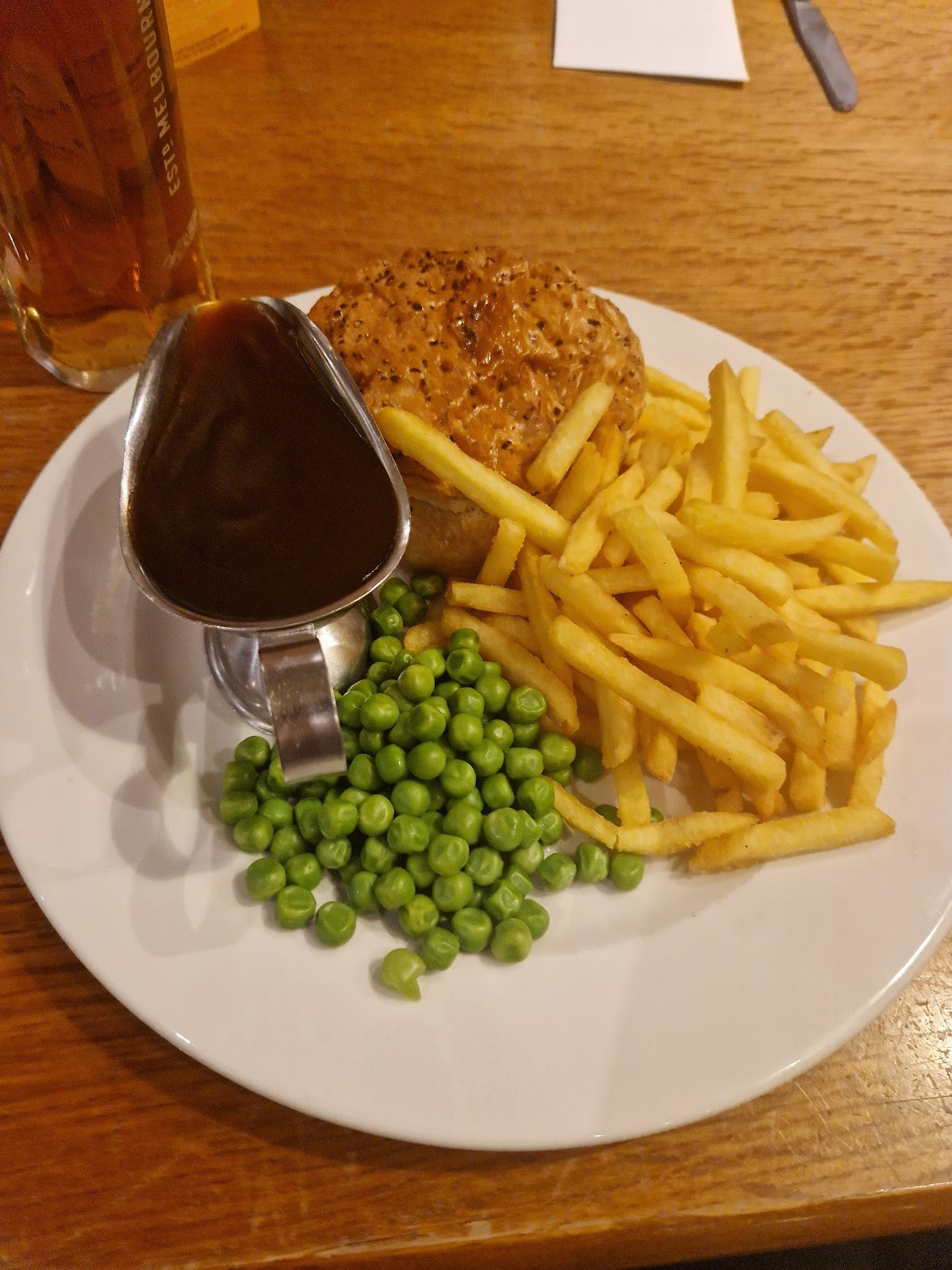 Lovely meal today steak and ale pie and chips really hot and tasty. very friendly, helpful staff and really good to be able to meet up with my old work colleague. Thank you to all the staff for going out of their way so readily to help me with seating needs as someone who has a disability.
